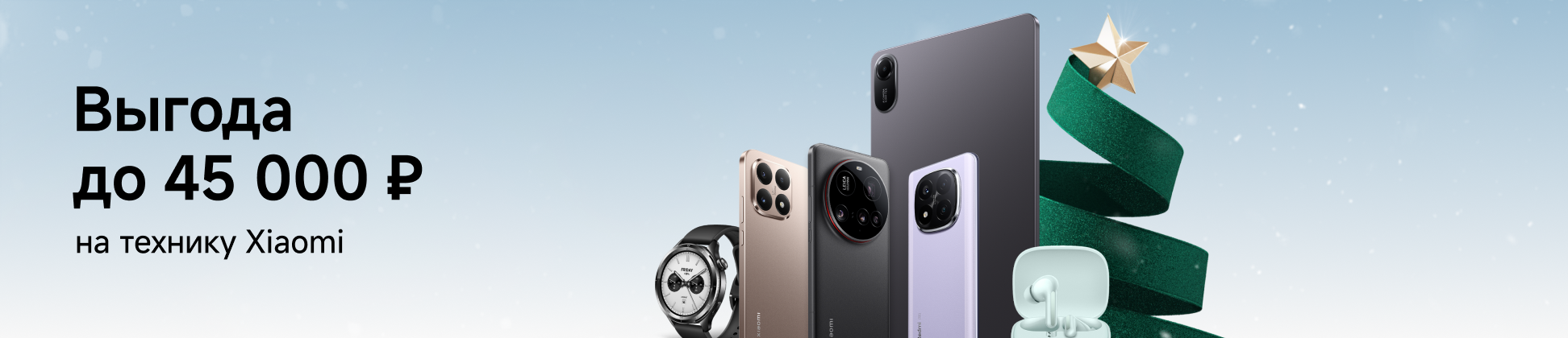 Время лучших подарков уже наступило! С 1 декабря по 12 января, полюбившиеся смартфоны, планшеты, наушники, умные часы и другая техника Xiaomi доступны по специальным ценам. Идеальный момент, когда передовые технологии встречаются с атмосферой чуда.